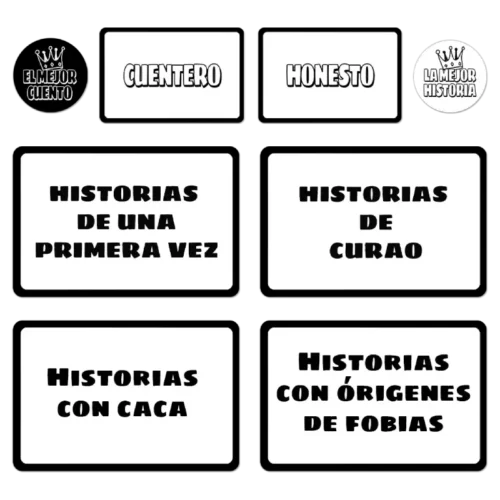 Un jugador elige 1 carta de TEMA y la lee en voz alta. Todos deben contar una historia personal relacionada al TEMA, menos el Cuentero que debe contar una historia falsa.