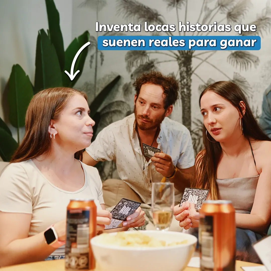 Perfecto, porque en Cuentero eso te da ventaja. Solo uno miente, pero todos sospechan de todos. Saca tus anécdotas más turbias, exagera, confunde, despista. Aquí se gana desconfiando, cagándose de la risa y diciendo: “¡no puede ser que eso sea verdad!