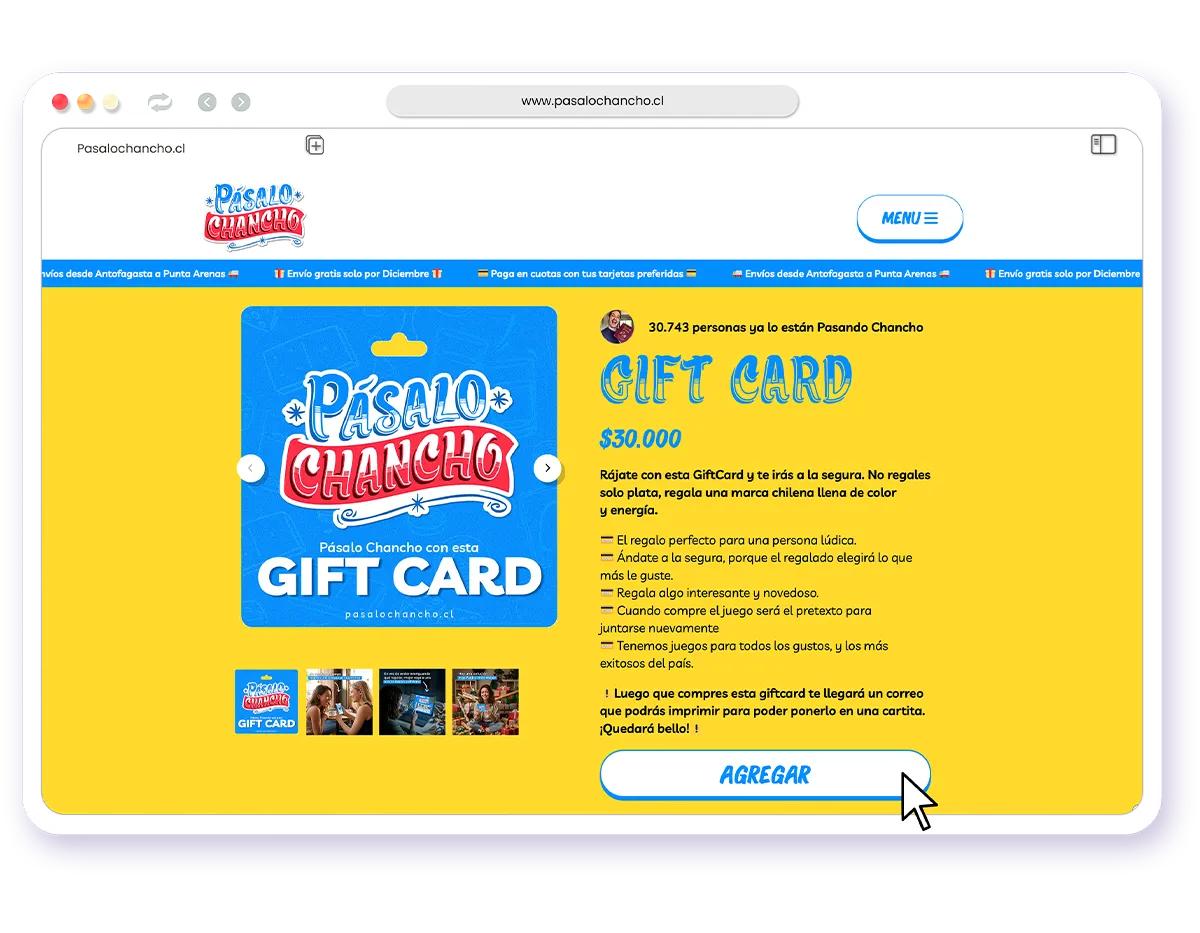 ¡Para nada! Cuando regales la giftcard tomate un tiempo para contarle a la persona sobre la marca, luego siéntese juntos a revisar los juegos de Pásalo Chancho y creen un gran momento juntos soñando sobre cómo lo pasarán. Y cuando le haya llegado el juego, será el mejor pretexto para volver a juntarse y tener una increíble y lúdica experiencia juntos.