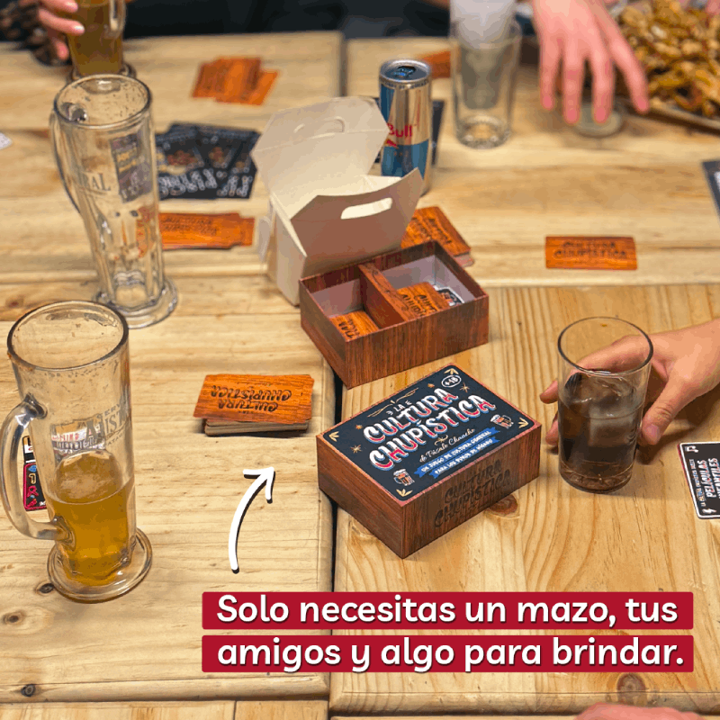 Olvídate de los manuales eternos que enfrían la previa justo cuando estás prendiendo el fuego para el asado. Cultura Chupística es el salvavidas perfecto para destapar unas chelas y empezar a jugar al toque. Solo sacas una carta y ya están todos participando. Será tu herramienta definitiva para armar el ambiente, asegurar las risas y encargarte de que absolutamente nadie se quede sobrio.