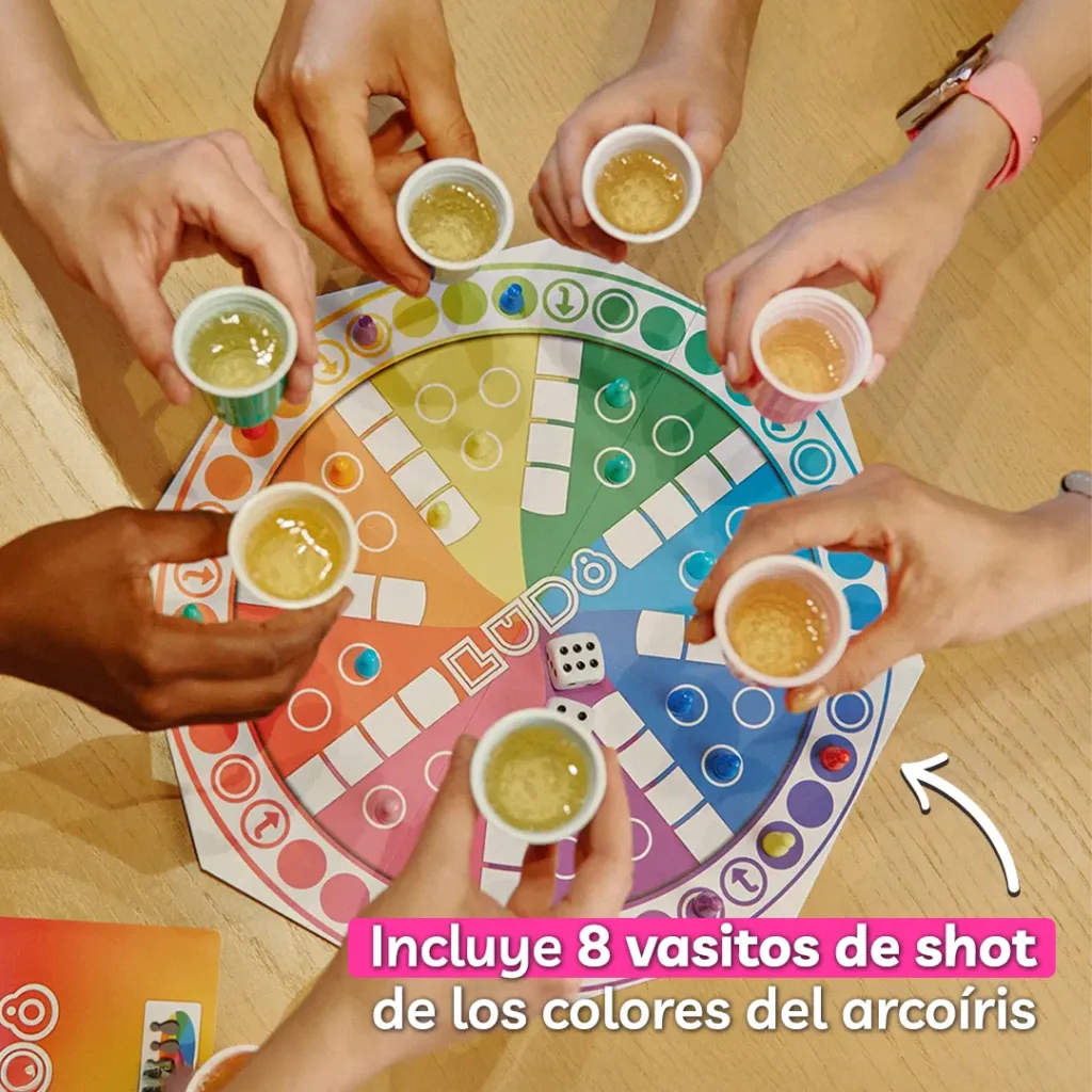 Un juego para tomar sencillo y rápido para todas las edades. 🌈 El único juego donde tomar te hace ganar. 🌈 Pueden jugar hasta 8 al mismo tiempo. 🌈 Incluye vasos de shot listos para llenarlos. 🌈 Pásate una noche llena de risas y competencia. 🌈 El mejor pretexto para juntar a tus amigos.