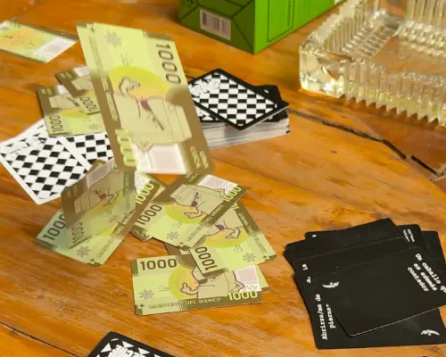 No vendemos juegos importados con traducciones genéricas. Cada uno de nuestros juegos de mesa nace aquí, con humor chileno real, diseño original y la garantía de hacerte reír hasta que te duela la guata. Creamos experiencias, no productos.